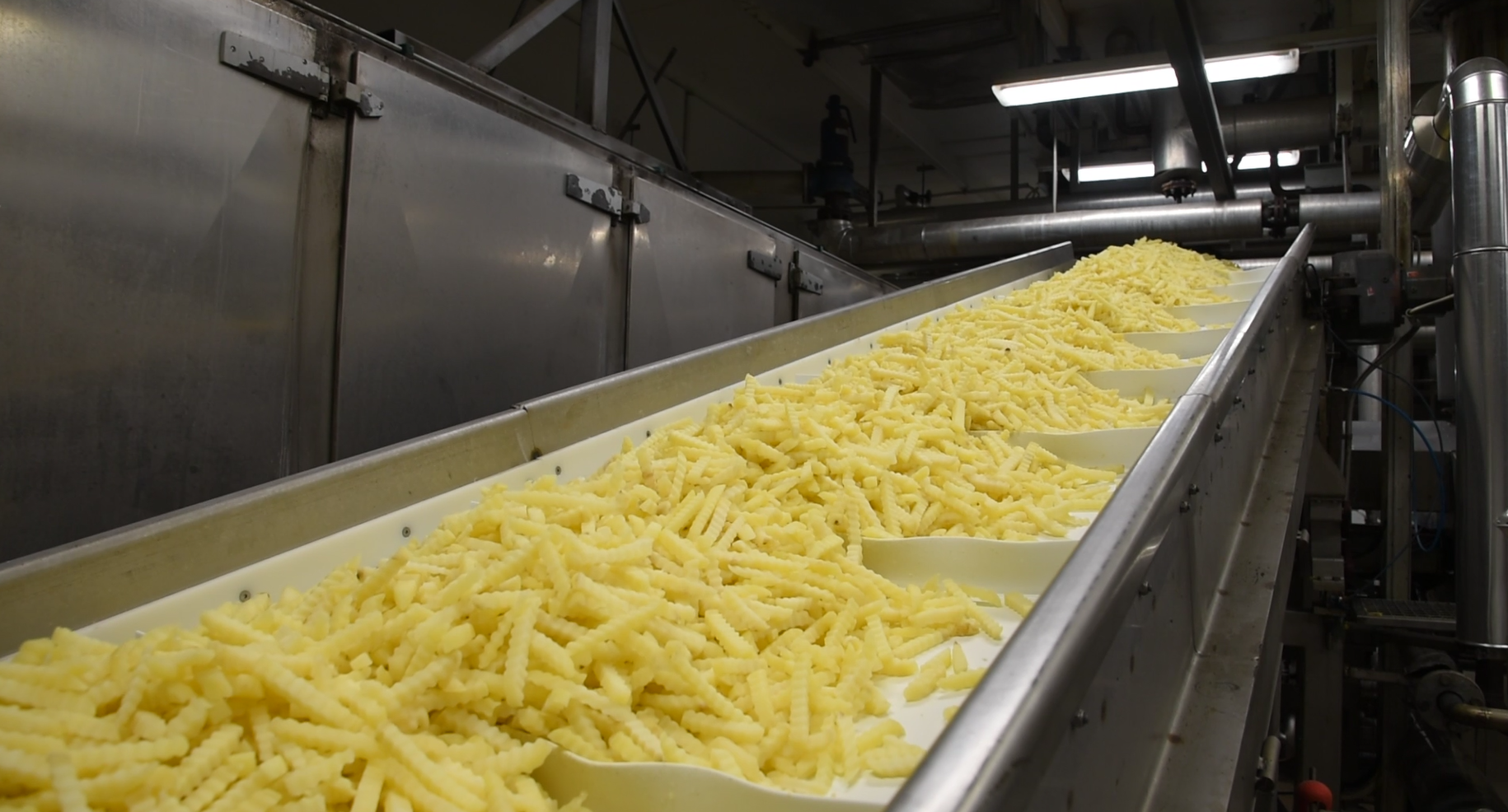Ranskanperunoita Pohjolan Perunan tuotantolinjalla.