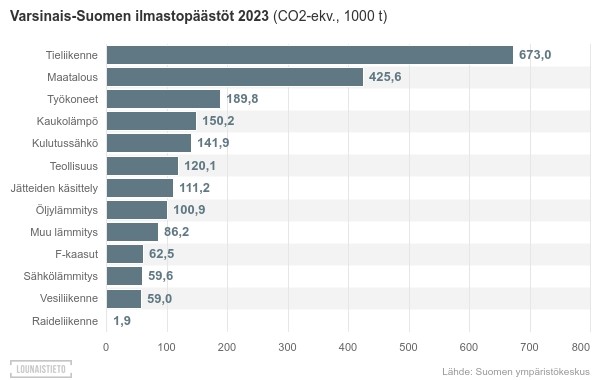 Varsinais-Suomen ilmastopäästöt ja ilmastopäästöjen kehitys: Ympäristön tilan seuranta (lounaistieto.fi/tilastot/ymparisto)